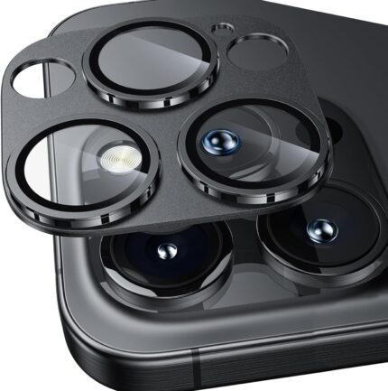 for iPhone 16 Pro/iPhone 16 Pro Max Camera Lens Protector, [Military Grade Shatterproof] [Strong Adsorption] Metal Aluminum Alloy Tempered Glass Screen Protector(Black Titanium)