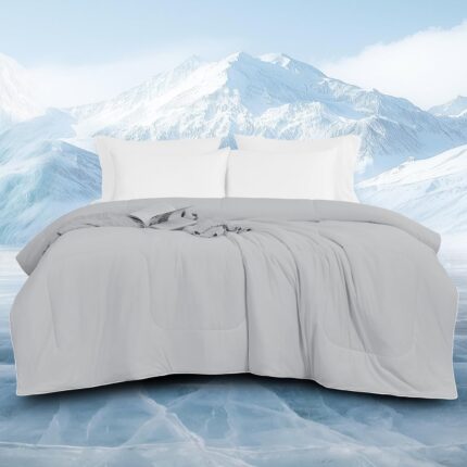 downluxe Cooling Comforter Queen Size, Cooling Blankets for Hot Sleepers, Cold Blanket, Summer Comforter with Q-Max>0.4 Arc-Chill Cooling Fiber, Light Grey