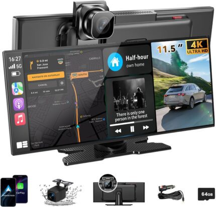 Largest 11.5 inch Wireless CarPlay Screen for Car, A-pple CarPlay & Android Auto HD Touchscreen with 4K Dash Cam/1080P Backup Camera/Navigation/Bluetooth/Voice Control/FM/Mirror Link,for All Vehicles