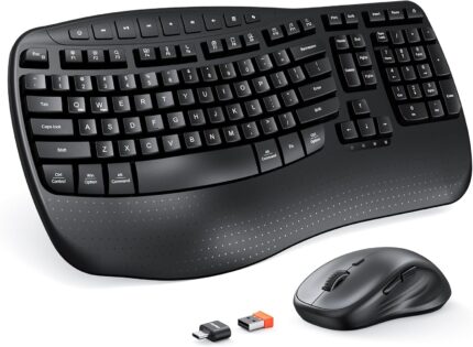 MEETION New Ergonomic Keyboard and Mouse Wireless Combo, Wave Keys Natural Typing, 2.4G Wireless Keyboard with Wrist Rest, 4 Adjustable DPI Optical Mouse, Computer/Laptop/Windows/Mac, Black