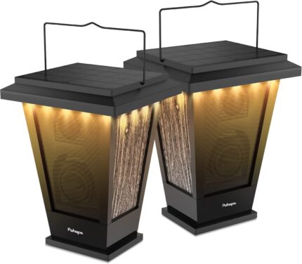 pohopa Bluetooth Speakers Waterproof, Solar Powered 2 Packs True Wireless Stereo Sound 20W Dual Pairing Lantern Indoor Outdoor Speakers with 20 Piece LED Lights, Richer Bass, Black