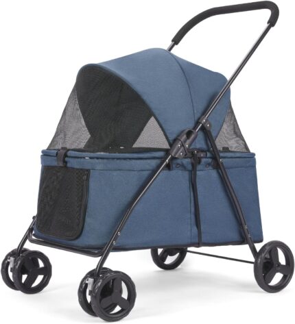 20% Larger Capacity Dog Stroller, Wedyvko Pet Strolling for Medium Dogs w/Dog Poop Bags & Dispenser, Storage Pouch, Zipperless, Entry in/Out Easy, Cat Stroller Universal (Navy Bule)