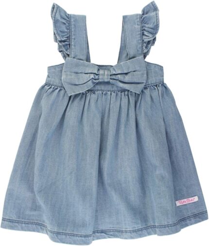 RuffleButts Baby/Toddler Girls Light Wash Denim Flutter Bow Dress – 0-3m