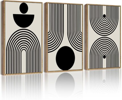 PHOPAGO Black Abstract Wall Art Geometry Minimalist Sun Lines Framed Canvas Painting Artwork 11x14in Natural Framed