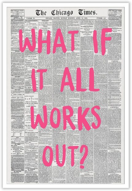Liyark Retro Trendy Newspaper Canvas Wall Art – ‘What If All Works Out’ Positive Affirmation Quote – Pink Font – Minimalist Home Decor – 12x16in Unframed