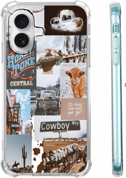 Cowboy Cowgirl Case Case for iPhone 16,Retro Western Country Life Art Collage Case for Boys Grils,Trendy Soft TPU Protective Case for iPhone 16