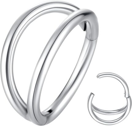 ORANGELOVE Double Hoop Nose Ring 18G 16G 316L Surgical Steel Cartilage Earring Septum Jewelry Seamless Hinged Clicker Segment Ring Conch Daith Tragus Helix Rook Piercing Earring Lip Ring