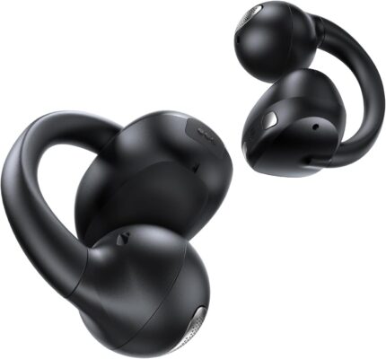 Haowolf Open Ear Clip On Earbuds, Bluetooth 5.4 AI Music Generator Wireless Bone Conduction Headphones with 4 Mics Clear Calls, 5.7g Ultra-Light, 30H Hi-Fi Stereo Playtime for Sports, Black