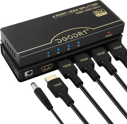 DGODRT 8K@60Hz HDMI Splitter 1 in 4 Out, 1×4 Power HDMI 2.1 Splitter 4 Ports Distributor Box, Support 4K@120HZ HDCP 2.3 3D HDR 48 Gbps for HDTV, Fire Stick, PS5, Xbox, Blu Ray(HDsplit8K-4P)