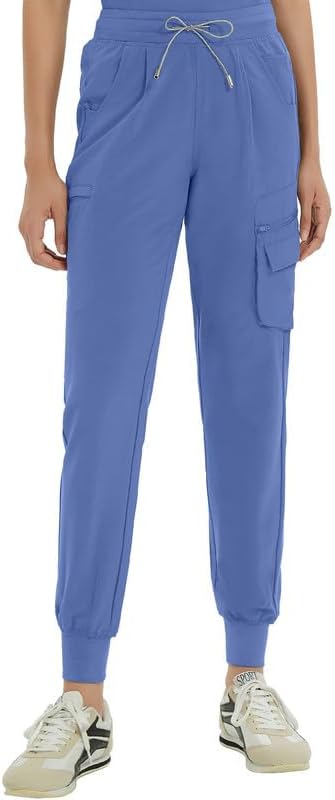 Kitmaz High Waisted Scrub Pants for Women – 4-Way Stretch Anti-Wrinkle Medical Slim Fit Jogger Pants, Drawstring & 5 Pockets