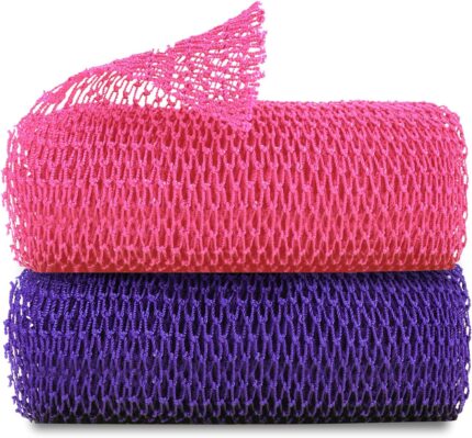 African Net Sponge, Authentic Exfoliating Body Scrubber for Bath and Shower, Multiple Textures with Gentle Deep Exfoliating and Rich Lather for All Skins (Pack of 2 (Pink+Purple))