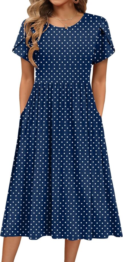 Price: (as of – Details) Product description HOTOUCH Womens Summer Casual Dress 2025 Short Sleeve Aline Flowy Dress Solid Color