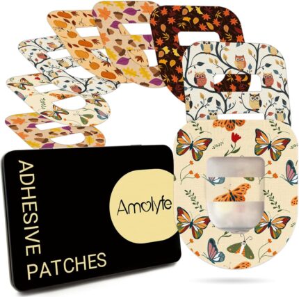Omnipod 5 Adhesive Patches Waterproof, 20 Pack Amolyfe Omnipod Overpatches with Stretchable Strap, Breathable, Long-Lasting Medical Adhesive, Premium Hinged Tin (Fall)