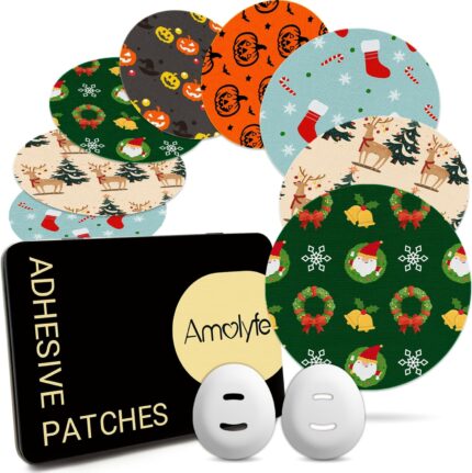 Dexcom G7 & Stelo Adhesive Patches Christmas, Amolyfe 20-Pack Over Patches Waterproof Bump-Proof with 2 Hard Caps and Tin Case, Breathable Medical Overpatch, 10-Day CGM Protection (Holiday)