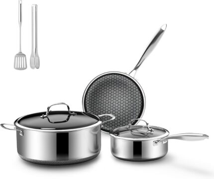 7-Piece 5 Ply Stainless Steel Cookware Set with Lids, Pots and Pans Set Non Stick, Non-Toxic, for Induction, Oven, Dishwasher Safe, RV Essentials, Kitchen Appliances