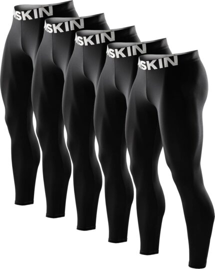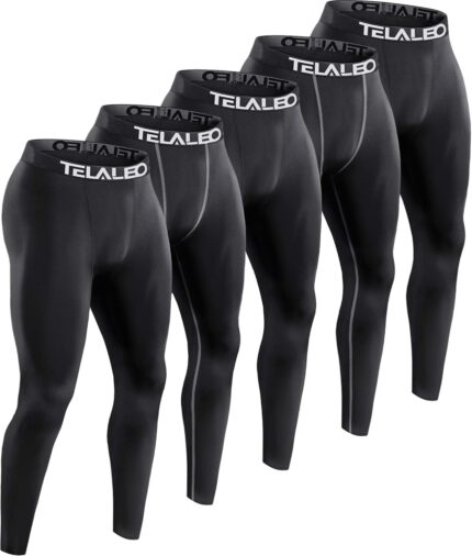 TELALEO 5 Pack Men’s Compression Pants for Workout, Running,Basketball,Football-Sports Baselayer Leggings