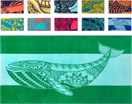 Nova Blue Whale Beach Towel (34 X 63) – Green Oversized Beach Towel with Whale Design Quick Dry BeachTowels Made from 100% Cotton – Sand Free Beach Towels – Extra Large BeachTowel