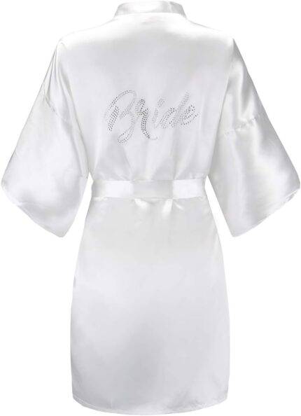 EPLAZA Women’s One Size Silver Rhinestones Bride Bridesmaid Short Satin Robes for Wedding Party Getting Ready