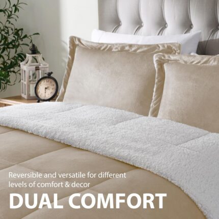 Cathay Home Bedding Sets: Ultra Soft and Plush Reversible Micromink and Sherpa 3-Piece Comforter Set, Camel, King (102″ x 90″)