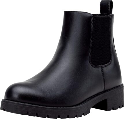 Athlefit Women’s Chelsea Boots Low Heel Slip On Lug Sole Elastic Short Ankle Booties