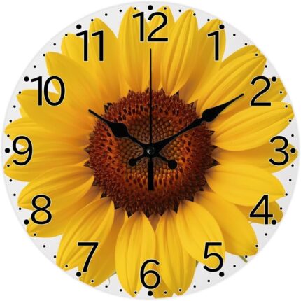 CHGCRAFT Sunflower Pattern Wall Clock Sunflower Non-Ticking Clock 12 Inch Round Decorative Clocks Printed Wall Clocks for Home Office Decoration