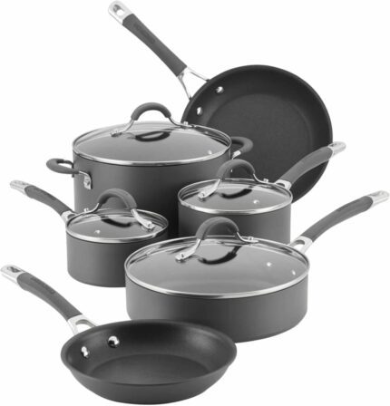 Circulon 83903 Radiance Hard Anodized Nonstick Cookware Pots and Pans Set, 10 Piece, Gray