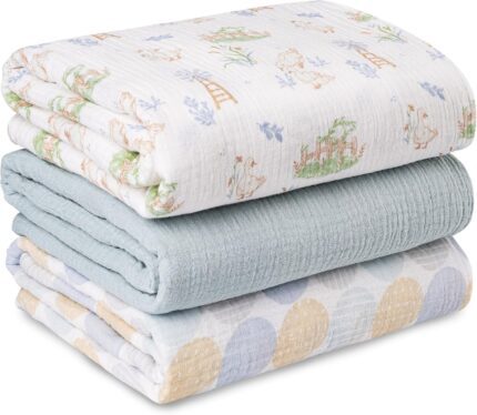 Muslin Swaddle Blankets for Newborn, 3 Pack Breathable Soft Receiving Blanket, Large 38 x 40 inches Swaddle Wrap Burping Clothes Diapers, Essentials Infant Shower Items, Toddler Gift (Cute Country)
