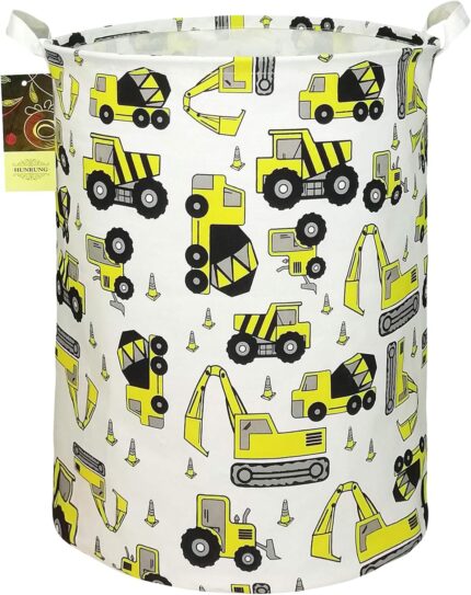 HUNRUNG Laundry Hamper,Large Canvas Fabric Lightweight Storage Basket Toy Organizer Dirty Clothes Collapsible Waterproof for College Dorms, Children Bedroom,Bathroom(Round Engineering)