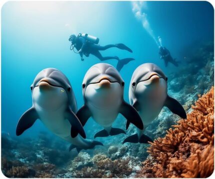 Cute Dolphins Gaming Mouse Pad Underwater Diving Scuba Non-Slip Rubber Mouse Pad for Computers, Laptop, Office, Home Rectangle Personalized Mousepad 9.5 Inch x 7.9 Inch