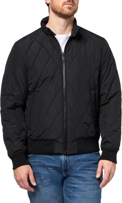 Price: (as of – Details) This men’s diamond quilted bomber jacket blends timeless texture with modern functionality. Featuring a stand