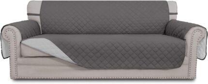 Easy-Going Reversible Couch Cover for 3 Cushion Couch Sofa Cover for Dogs Water Resistant Furniture Protector Cover with Foam Sticks Elastic Straps for Pet Cat (Sofa, Gray/Light Gray)