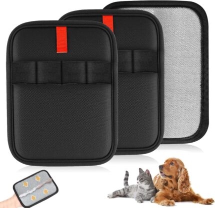 Pet Hair Removal Glove for Dogs & Cats, 2-in-1 Double-Sided Pet Grooming Tool, Electrostatic Pet Hair Remover Glove for Clothes & Furniture + Silicone Brush for Deshedding Pets
