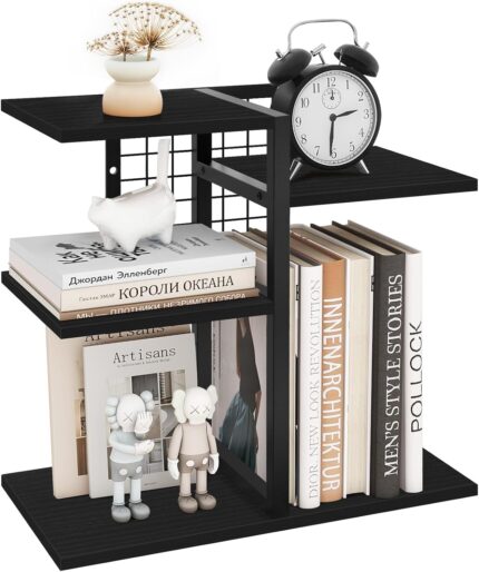ELITEROO Desktop Bookshelf, 4 Tier Wood Desk Organizer Shelf, Tabletop Storage Shelf Rack for Office Supplies, Desk Decorations for Women Office, Rustic Black