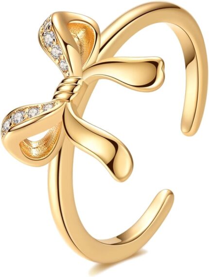 Price: (as of – Details) Hapour Adjustable Bow Ring for Women S925 Sterling Silver Stackable Open Eternity Band CZ Knot