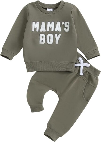 fhutpw Fall Baby Boy Clothes Toddler Embroidery Little Dude Print Long Sleeve Sweatshirt Tops Solid Pants Winter Outfits