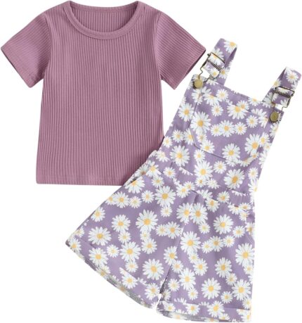 fhutpw Toddler Baby Girls Summer Outfits Daisy Ruffle Short Sleeve T-Shirts Tops Floral Shorts 2Pcs Clothes Set 6M-4T