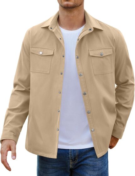 COOFANDY Men’s Casual Lightweight Shirt Jacket Work Shacket Jackets Military Button Down Overshirt With Flap Pockets