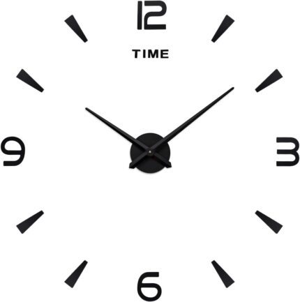 3D DIY Wall Clock Large Frameless Decor Sticker, Minimalist Design Time Markers, Metal Hands, Silence Quartz Movement, Decoration for Home, Office (Black)