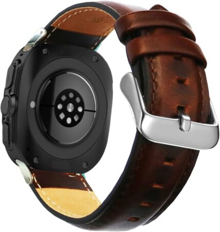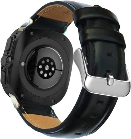 Compatible Samsung Galaxy Watch 8/7 Ultra Bands 47mm 2025/2024 Men Women, No Gaps Quick Release Genuine Leather Replacement strap with Stainless Steel Buckle for Galaxy Watch Ultra Smartwatch Black