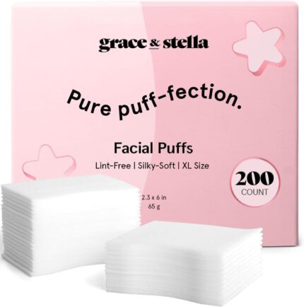 grace & stella Face Pads for Toner Essence, and DIY Mask (200 Count) – Soft, Lint-Free Makeup Remover Pads – Durable Facial Pad for Skincare – Vegan, Cruelty-Free