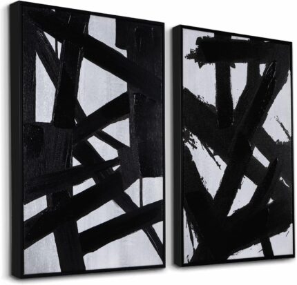 Zessonic Black And White Abstract Wall Art – Black Painting Stroke Graffiti Artwork for Living Room, Bedroom, Office Decor,16″ x 24″ x 2