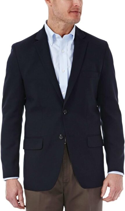 Haggar Men’s Travel Stretch Tailored Fit 2-Button Side Vent Solid Blazer