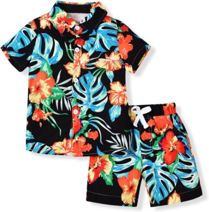 HINTINA Toddler Infant Baby Boy Shorts Set Hawaiian Outfits Short Sleeve leaf Floral Flower Shirt Summer Clothes Set Suit