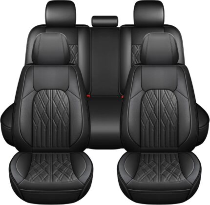 Huidasource Car Seat Covers Full Set, Leather Vehicle Cushion Covers, Universal Fit for Most Car SUV Pickup Truck, Fit for Acura Honda City Nissan Altima Mazda Hyundai Audi A3 A4(Full Set/Black)