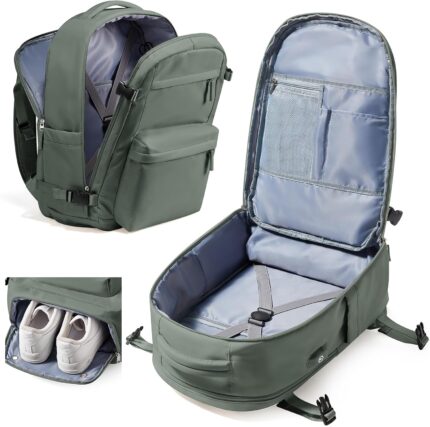 Large Travel Backpack For Women Men,Mochila de Viaje,15.6Inch Laptop Travel Backpack Carry on Flight Approved,Frontier Airlines Personal Item Travel Bag,Waterproof Luggage Backpack(Green)