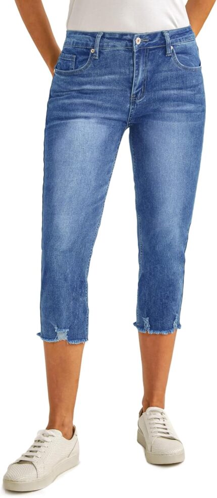luvamia Jean Capri Pants for Women High Waisted Ripped Skinny Jeans Stretchy Denim Capris Cropped Jeggings with Pockets