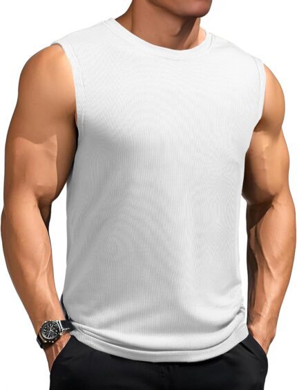 JMIERR Men’s Ribbed Tank Tops Knit Sleeveless Workout T Shirt Muscle Gym Fitness Tee