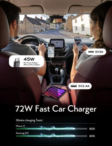 LISEN 72W Retractable Car Charger USB C for iPhone 17 Fast Charge,【60% Less Space, Ultra-Mini】 Type C Car Phone Charger Adapter for iPhone 16 15 Pro Max Plus Air Pixel Android
