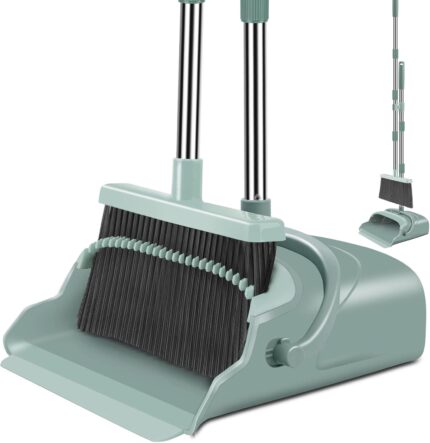 kelamayi Upgrade Broom and Dustpan Set, Large Size and with Long Handle, Upright,Ideal for Indoor Outdoor Garage Kitchen Room Office Lobby Use (Green)