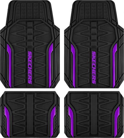 Skechers Car Floor Mats,Heavy Duty Rubber Car Mats Full Set,All Weather Floor Mats,Waterproof TrimTo Fit Universal Floor Liner Car Accessories,Automotive Floor Mats for Cars Trucks SUV,Purple